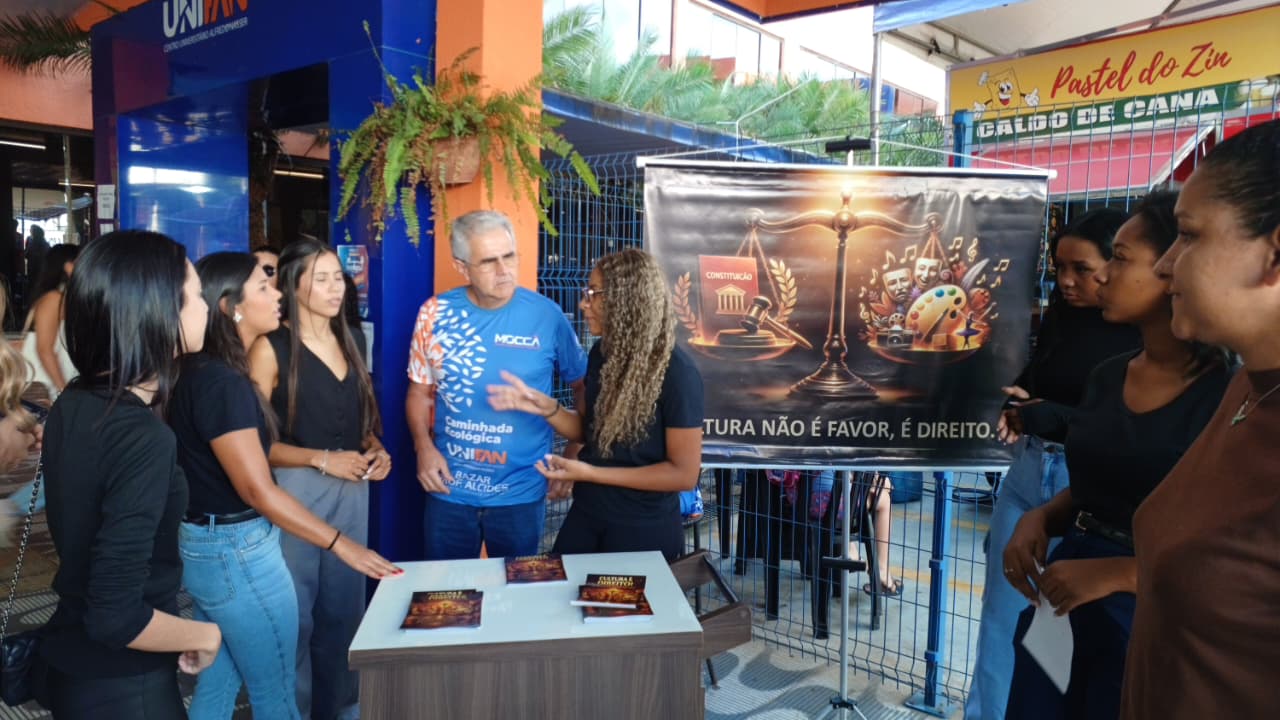 Por meio de estande interativo, abordagem direta ao público e distribuição de panfletos educativos, a atividade integra o projeto “Direito em Cena – Arte, Cultura e Cidadania” desenvolvido pelo professor Júlio Roberto Espíndola.