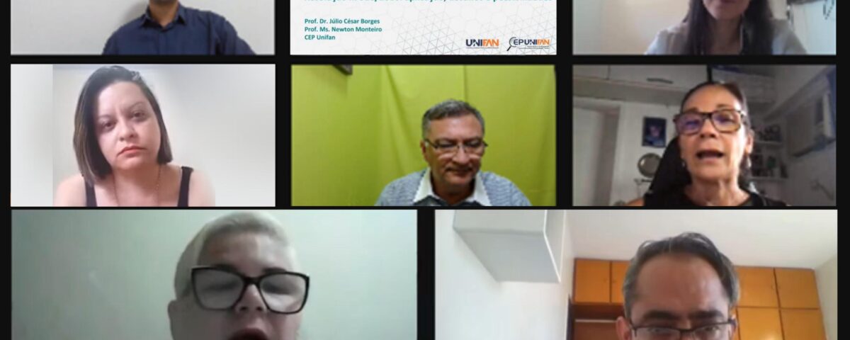 A abertura ficou por conta do Professor Dr. Emídio Brasileiro, que deu as boas-vindas em nome da Coordenação de Pesquisa e da Pró-Reitoria Acadêmica, à qual é vinculada o CEP. Em seguida, foi a vez da Profa. Dra. Ivone Evangelista Cabral, convidada da Universidade Estadual do Rio de Janeiro (UERJ) e da Comissão Nacional de Ética em Pesquisa (Conep), do Ministério da Saúde. Ela proferiu uma conferência que abordou a atuação dos comitês de ética em pesquisa nesses tempos difíceis da pandemia causada pelo corona vírus. De modo a oferer uma visão geral sobre a Plataforma Brasil, onde devem ser cadastrados os pesquisadores e seus projetos de pesquisa para apreciação ética, a Profa. Esp. Marijara de Lima palestrou indicando quais caminhos seguir, do cadastramento ao acompanhamento dos projetos. Glauciene Maia de Almeida Praxedes – representante dos participantes em pesquisas do CEP Unifan – abordou a Resolução nº 466, de 12 de dezembro de 2012, a qual define como deve trabalhar um CEP e a Conep, além de enfatizar o caráter de integralidade e de parceria do sistema CEPs/CONEP, cujo trabalho deve ser cooperativo e de inter-relação. Por fim, o Prof. Dr. Júlio César Borges e o Prof. Ms. Newton Monteiro palestraram sobre a Resolução nº 510, em vigor desde em 24 de maio de 2016. Esta normativa determina procedimentos éticos específicos para investigações com seres humanos que utilizam abordagens das ciências humanas e sociais (CHS), sendo resultado do trabalho de pessoas e instituições que apontavam a inadequação de uma única orientação, de cunho estritamente biomédico, para pesquisas em diferentes áreas. A mediação do encontro foi feita pela Profa. Ms. Marília Cordeiro de Sousa.