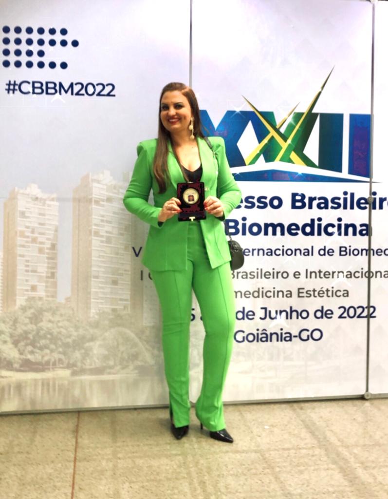 Entre as solenidades do evento, no dia 16 de Junho de 2022, os Conselhos Regionais e Federal de Biomedicina prestigiaram com uma brilhante homenagem “O Biomédico do Ano 2021-2022”. A Profª Karla Cardoso da Silva,Docente dos Cursos de Medicina (Morfofuncional) e Biomedicina, também Diretora do Sinbiomed (Sindicato dos Biomédicos do Estado de Goiás), foi homenageada nesta ocasião, pelos relevantes trabalhos prestados no âmbito da Biomedicina e incentivo à categoria.